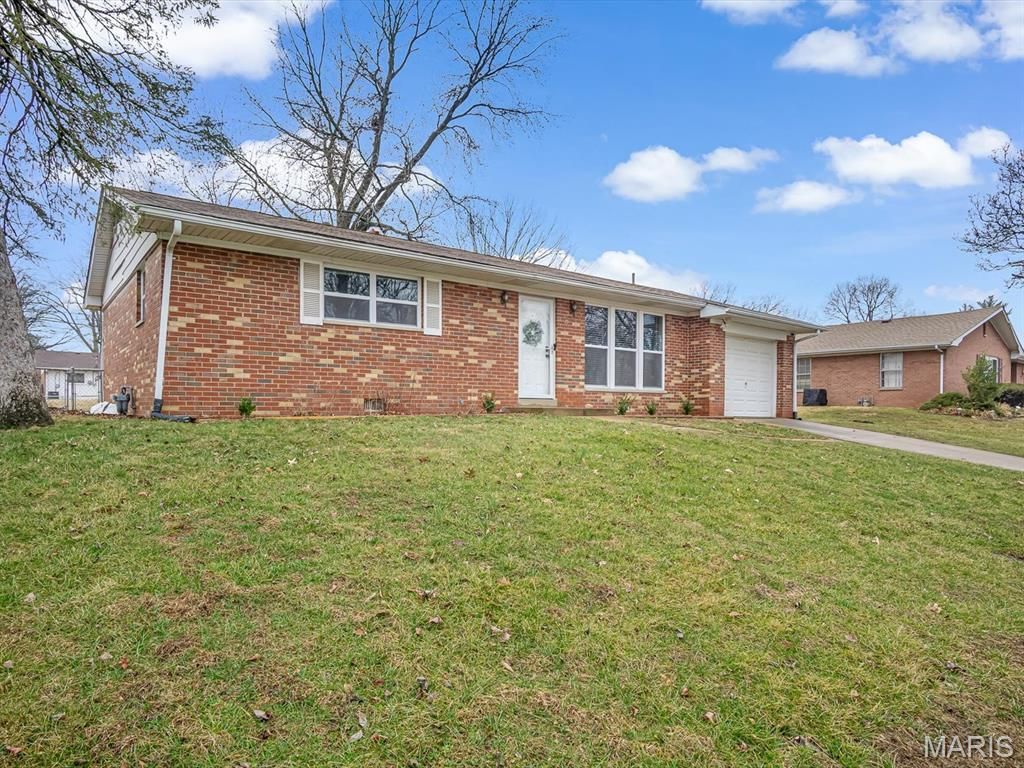 Charming and move-in ready, this 2-bedroom, 1-bath brick ranch offers a comfortable layout and modern updates in a convenient Fairview Heights location. Step inside to a bright, open living area filled with natural light, highlighted by a stylish accent wall with an electric fireplace that serves as a welcoming focal point. The space flows easily into the updated kitchen featuring white cabinetry, stainless steel appliances, generous counter space, and a breakfast bar that opens to the living area. Just off the kitchen is a flexible dining space with sliding doors that lead to the backyard, making it easy to enjoy indoor and outdoor living. Down the hall, you'll find two bedrooms and a full bath. A large separate laundry room with additional cabinet storage adds everyday convenience. Outside, the backyard provides space to relax, garden, or entertain. Located near shopping, dining, parks, and major highways, this home offers a great opportunity for buyers looking for a move-in-ready property with style and functionality.